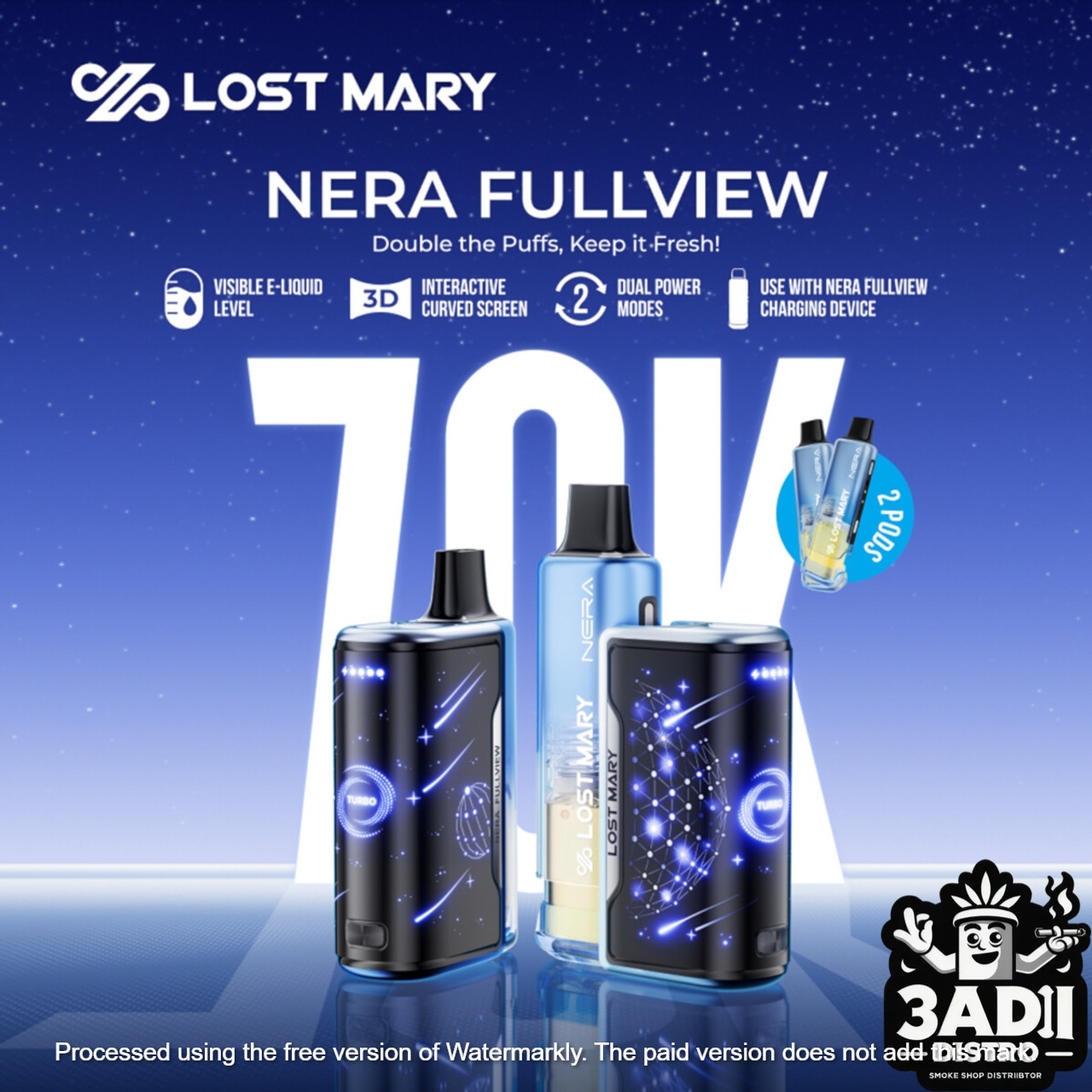 Take your vaping experience to the next level with the Lost Mary Nera Fullview 70K Puff Disposable Kit. This advanced full kit includes two pre-filled 12mL pod disposables—delivering a combined 70,000 puffs of premium flavor performance. Each pod is designed to fit seamlessly with the Lost Mary Nera Fullview Device, offering 50mg nicotine strength for a consistently powerful and satisfying draw.
