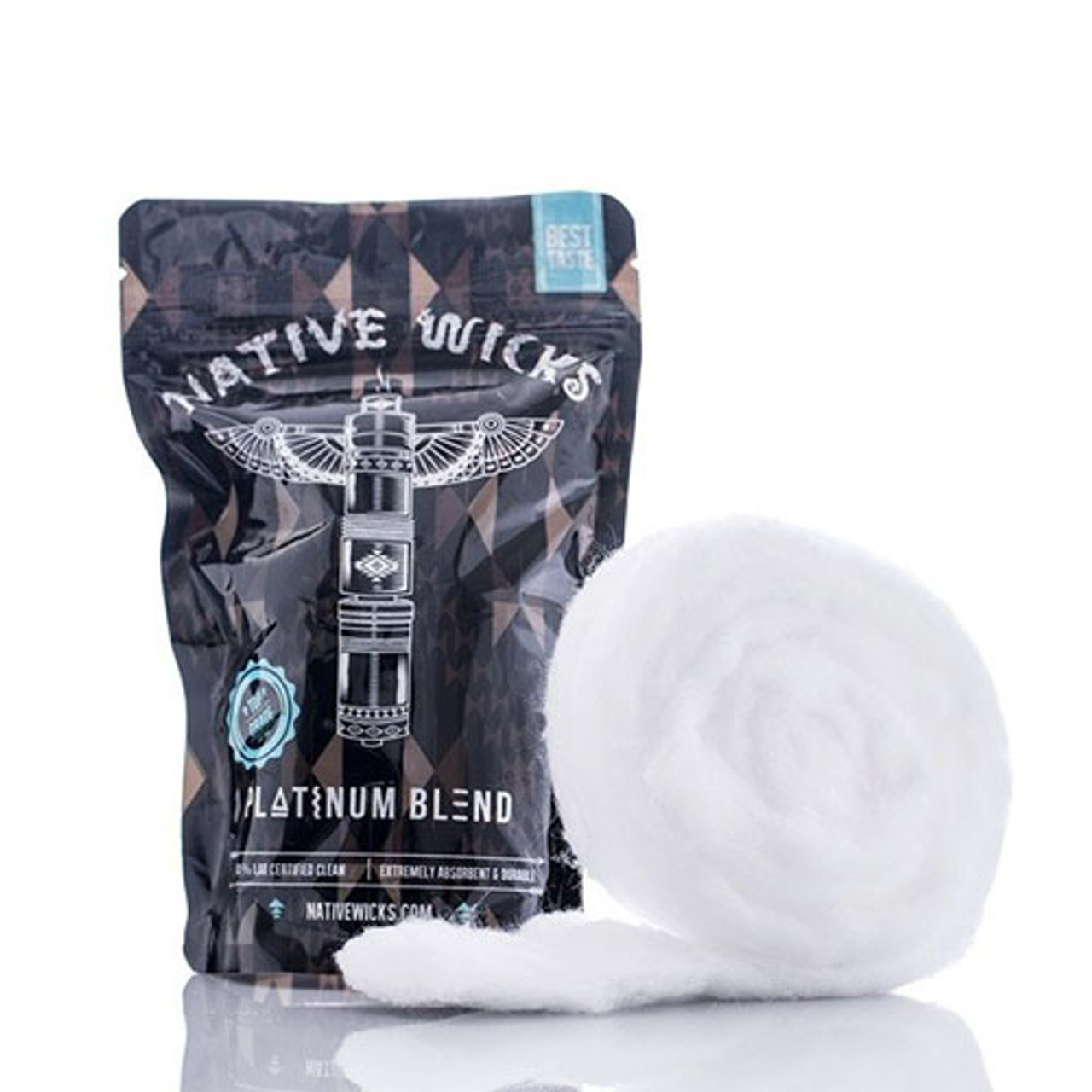 PLATINUM BLEND : Native wicks began with a simple idea, create the highest quality, best performing wicking material. Since the release of their original Pima blend, and with much gratitude to their loyal customers, they’ve become a world leader in high quality cotton wicking material. Over a year later after heavy research and development with one of the largest cotton manufacturers in the US, they’ve created Native Wicks Platinum Blend. A proprietary blend of multiple fibers to enhance absorbency, wicking petential, and maximize cleanliness. Native Wicks “Platinum Blend”, Re-inventing the way you wick again with their long lasting clean tasting cotton. The new standard of vaping today, and far into the future.